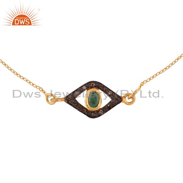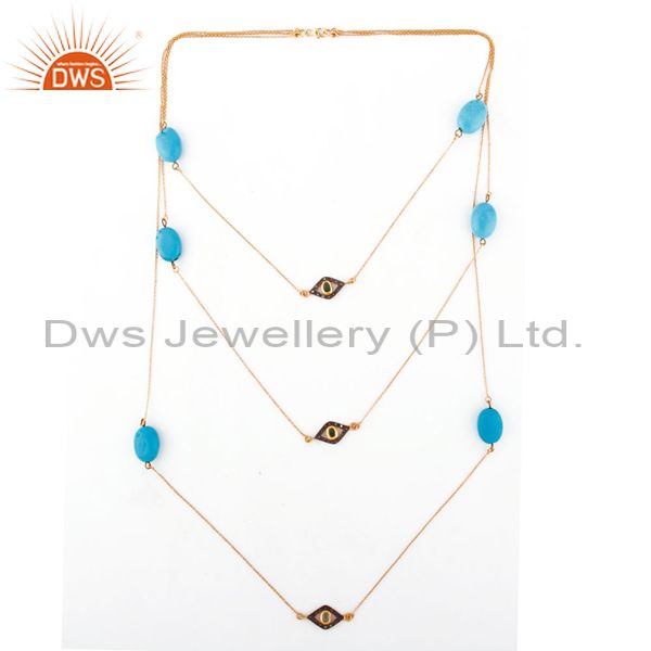 Turquoise and Emerald Green Gemstone 18k Gold Over Sterling Silver Necklace