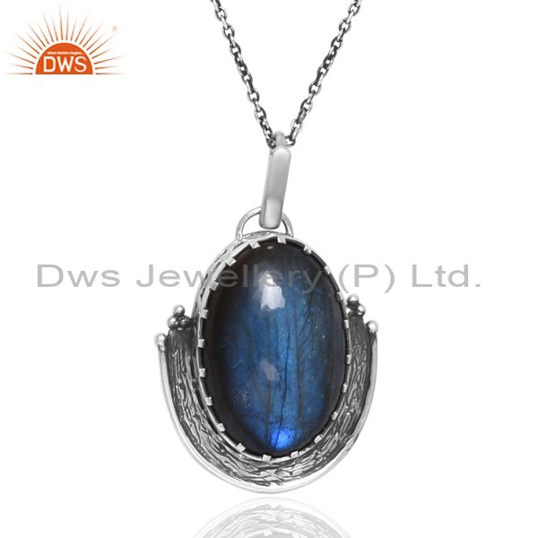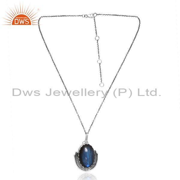 Unique Oval Labradorite Cabushion Stone Border Drop Chain
