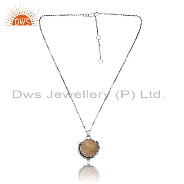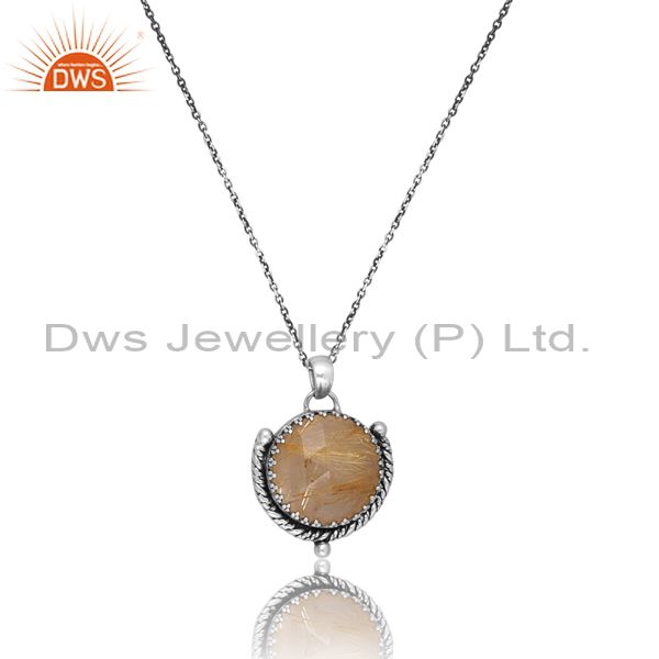 Unisex Wire Border Drop And Chain In Golden Rutile In Silver