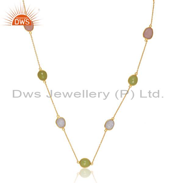 Unshape Prehnite, Rose Chalcedony And Rainbow Moonstone Ring
