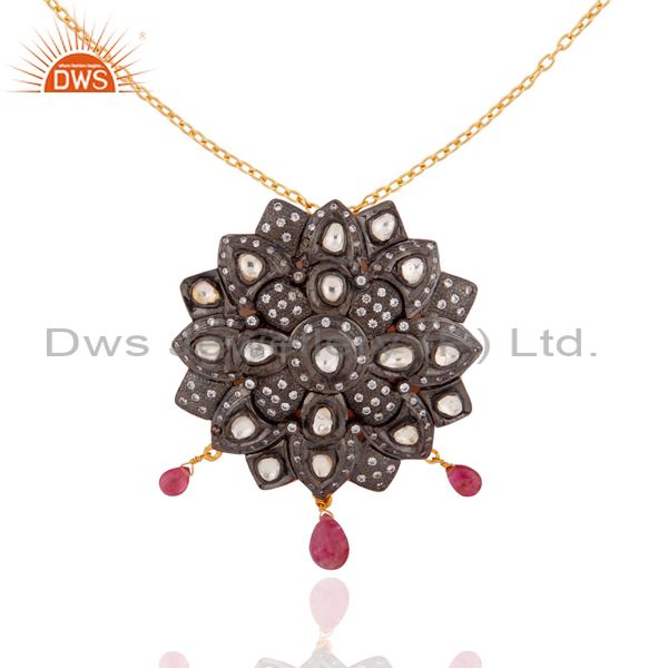 Victorian Tourmaline Gemstones 925 Sterling Silver Pendant Crystal Jewelry 17" C