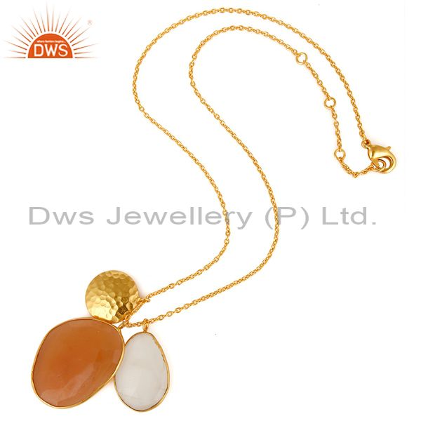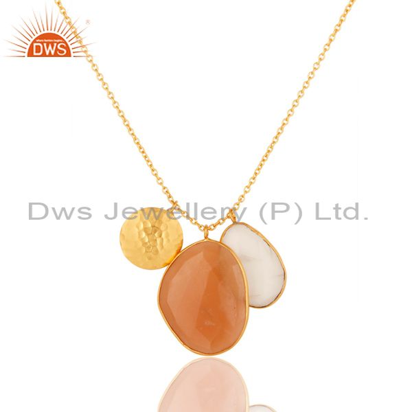 White And Peach Moonstone 18K Gold Plated Necklace With Disc Charm