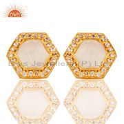 White Moonstone & White Zircon Charm Little 18k Gold Plated Brass Chain Pendant