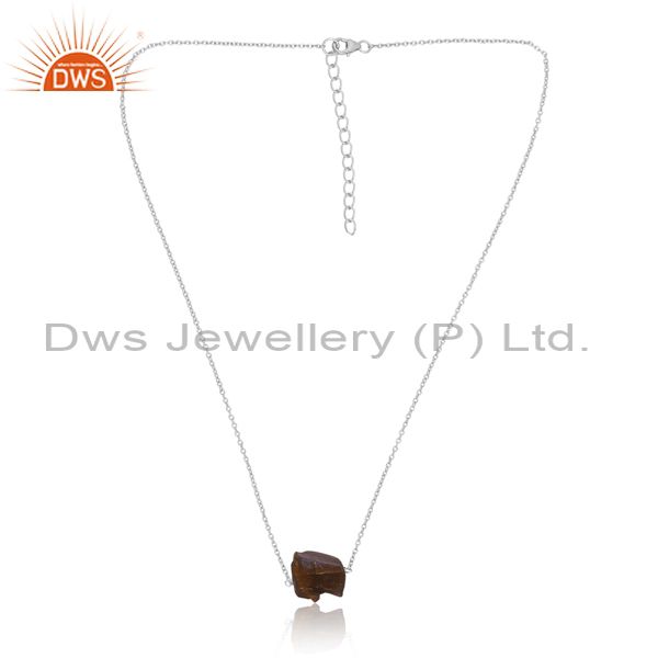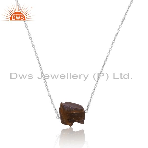 White Silver Chain And Pendant With Labrodorite Rough Stone