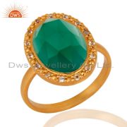 White Topaz 925 Sterling Silver Green Onyx 18K Yellow Gold Plated Pendant 16"In
