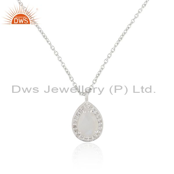 White Topaz and Rainbow Moonstone Fine Silver Chain Pendant Manufacturer