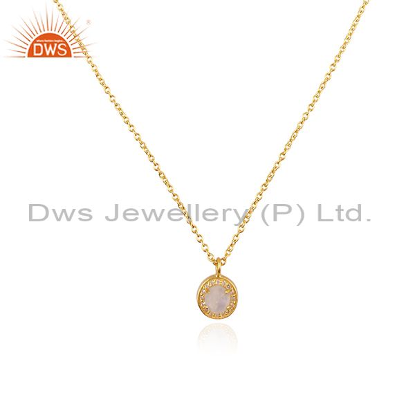 White Topaz, Rainbow Moon Stone Set Gold On Silver Necklace