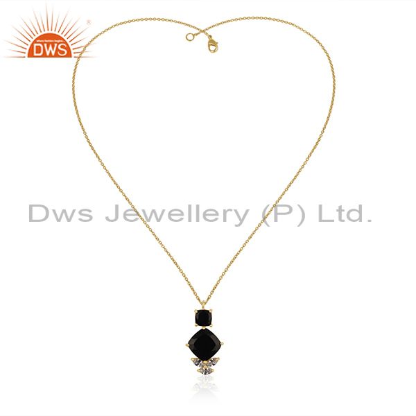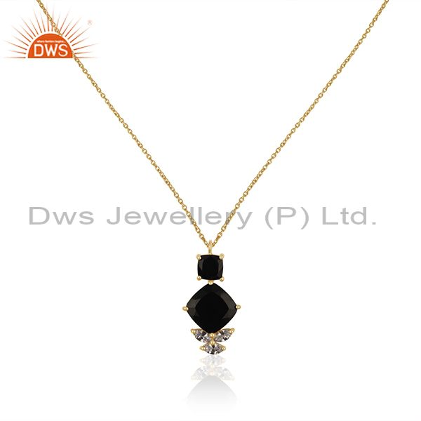 White Zircon And Black Onyx Gemstone 925 Silver Custom Pendant Manufacturer
