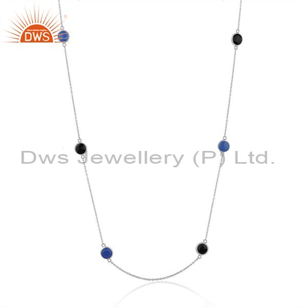 Wholesale Fine Silver Chalcedony Black Onyx Gemstone Necklace Jewelry Supplier