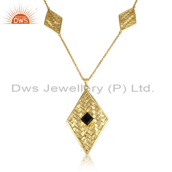 Woven Black Onyx Set Pendant Set Gold On 925 Silver Chain