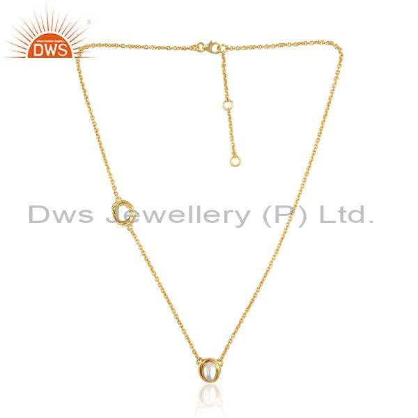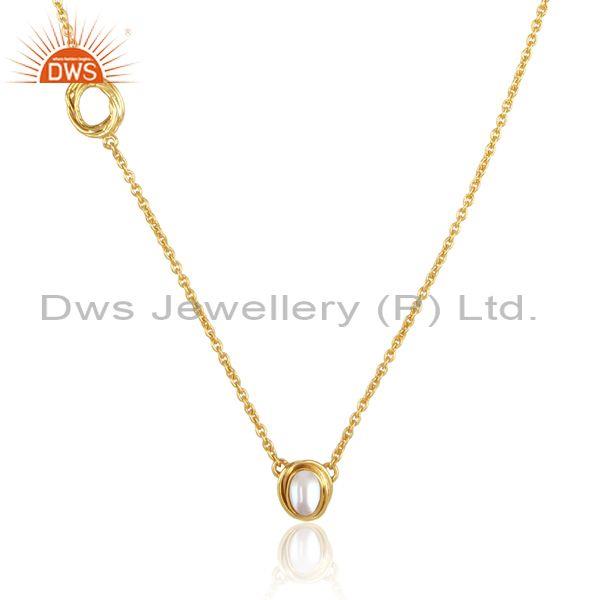 Wrapped Pearl Round Pendant And Gold On 925 Silver Necklace