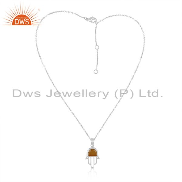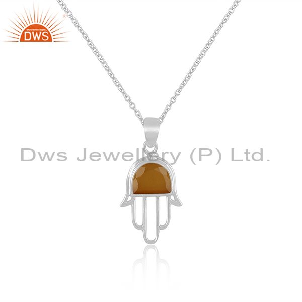 Yellow Chalcedony Set Fine Silver Hamsa Pendant And Chain