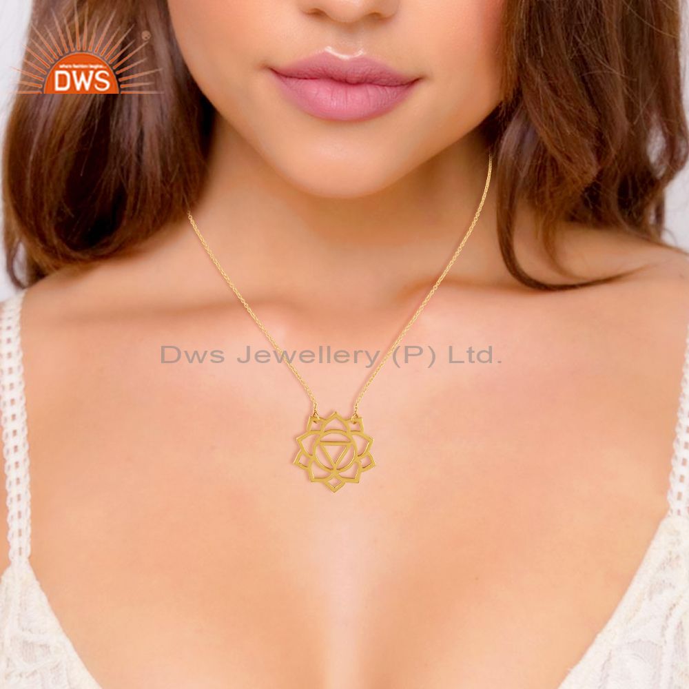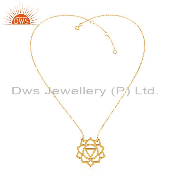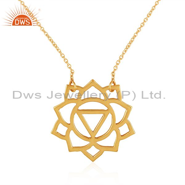 Yellow Gold Plated Manipura Chakra Design Silver Chain Pendant