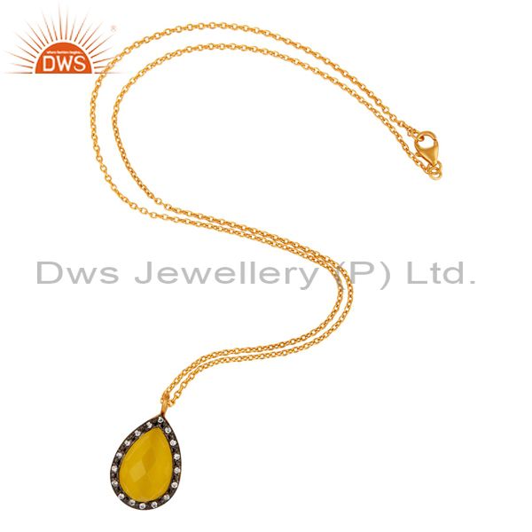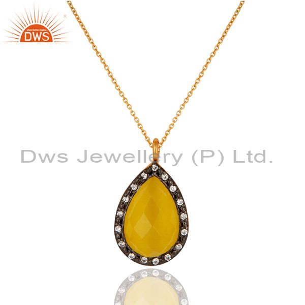 Yellow Gold Plated Sterling Silver Moonstone Cz Accent Drop Pendant With Chain