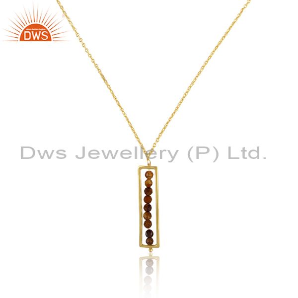 Yellow Tiger Eye Set 18K Gold On Sterling Silver Necklace