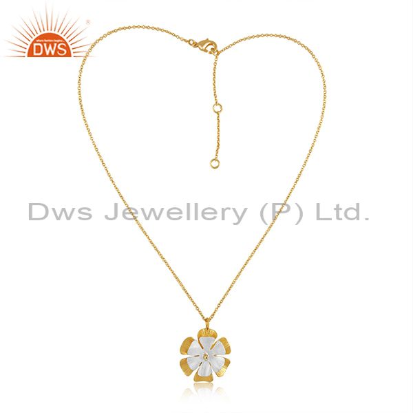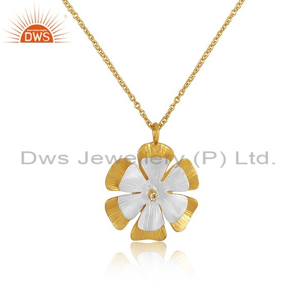 Zircon Citrine Set Floral Fine Brass Gold Pendant And Chain