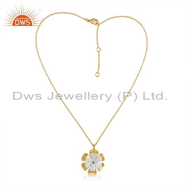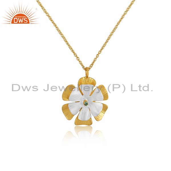 Zircon Green Set Floral Fine Brass Gold Pendant And Chain