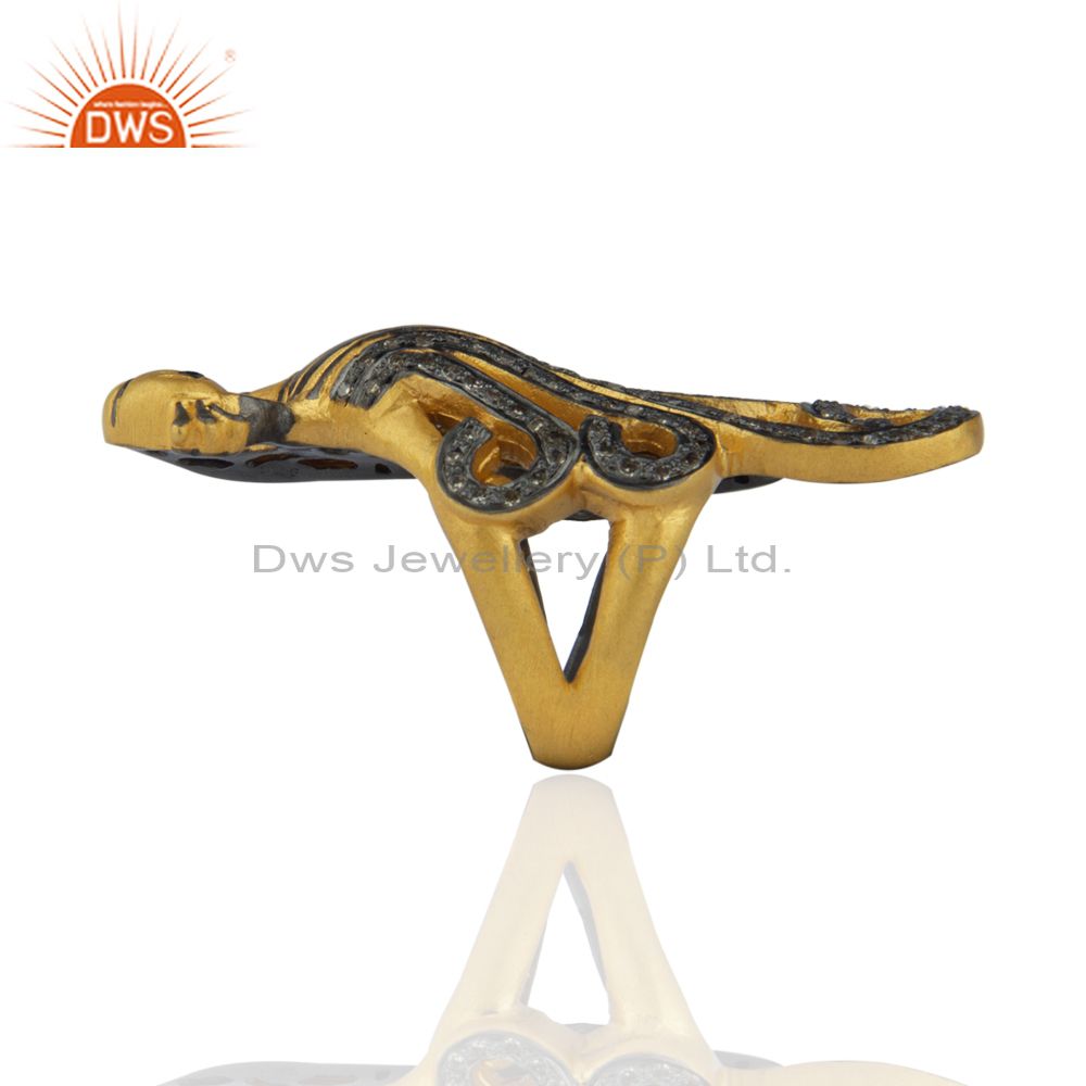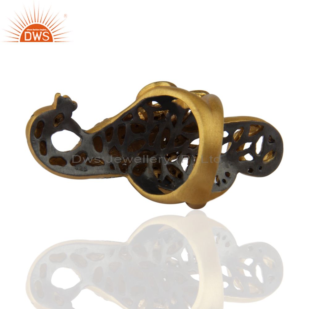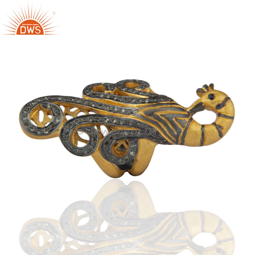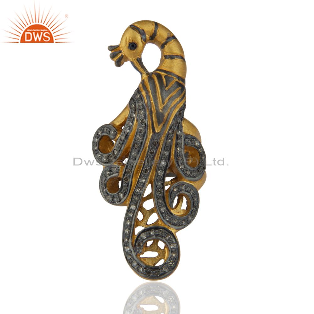 0.870Ct Pave Setting Diamond 925 Sterling Silver Over 18K Peacock Designer Ring