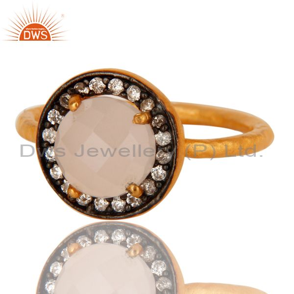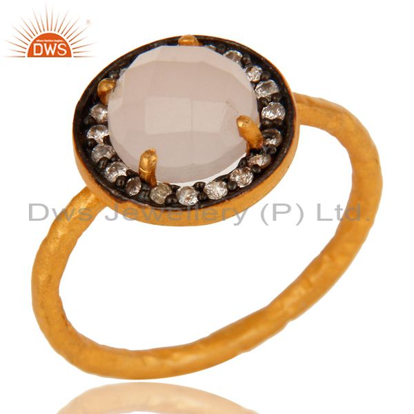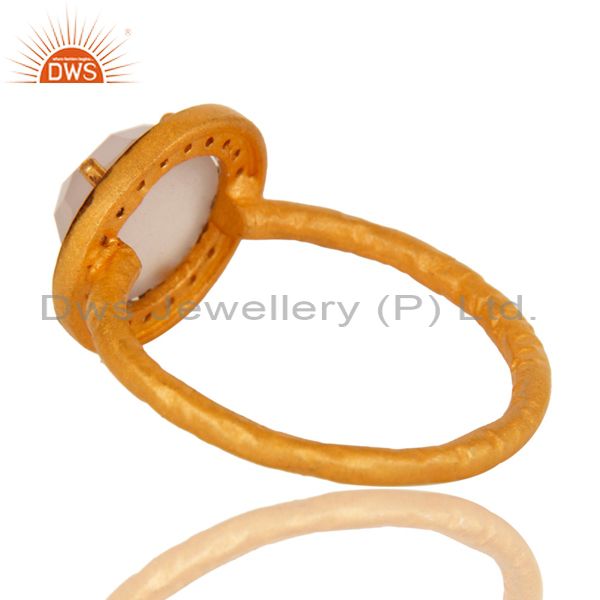 14K Gold Over Sterling Silver Yellow Moonstone And Cz Hammered Stack Ring