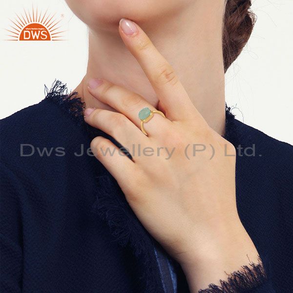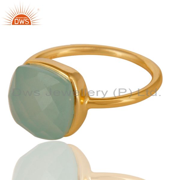 14K Gold Plated 925 Sterling Silver Faceted Dyed Chalcedony Statement Ring