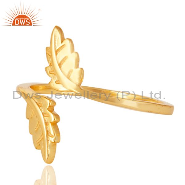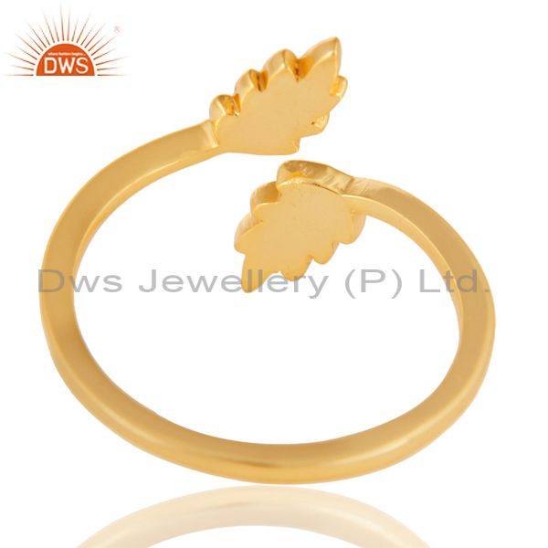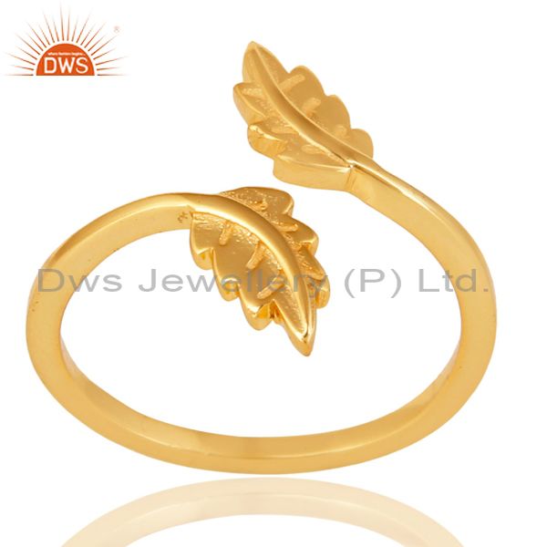 14K Gold Plated 925 Sterling Silver Handmade Leaf Band Design Stackable Ring