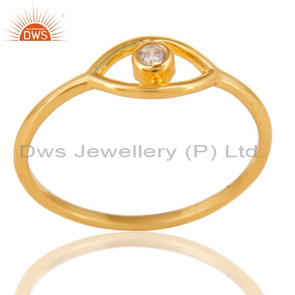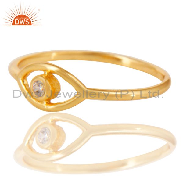 14K Gold Plated 925 Sterling Silver Handmade White Zirconia Stackable Ring