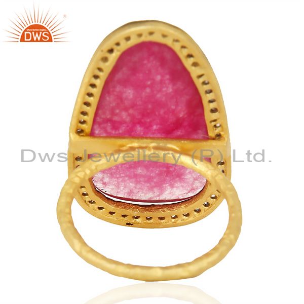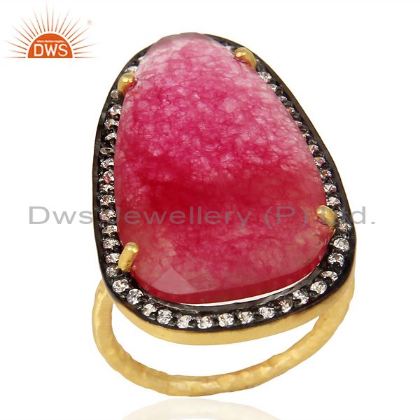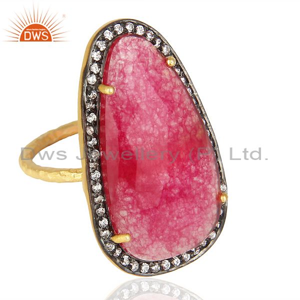 14K Gold Plated 925 Sterling Silver Red Aventurine CZ Gemstone Statement Ring