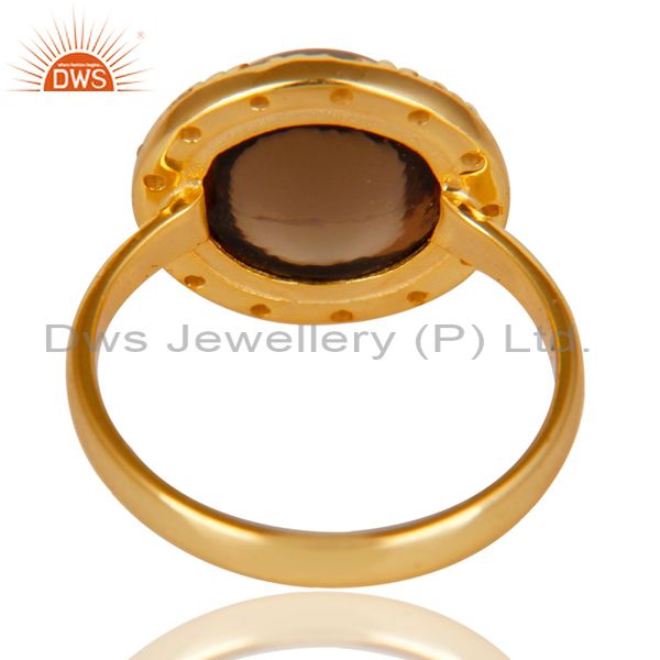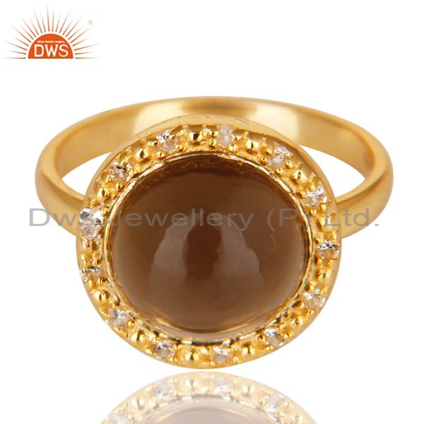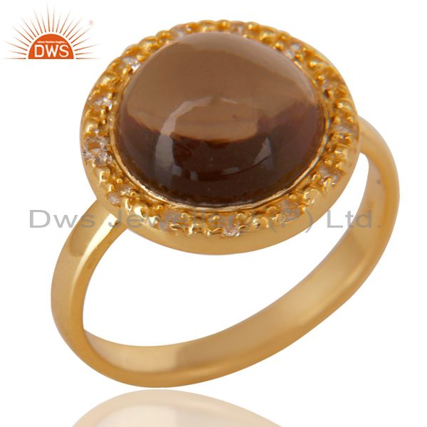 14K Gold Plated 925 Sterling Silver Smokey Topaz & White Topaz Cocktail Ring
