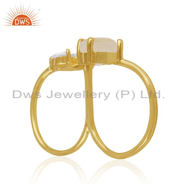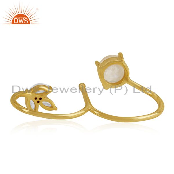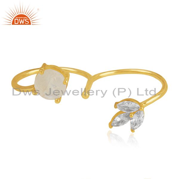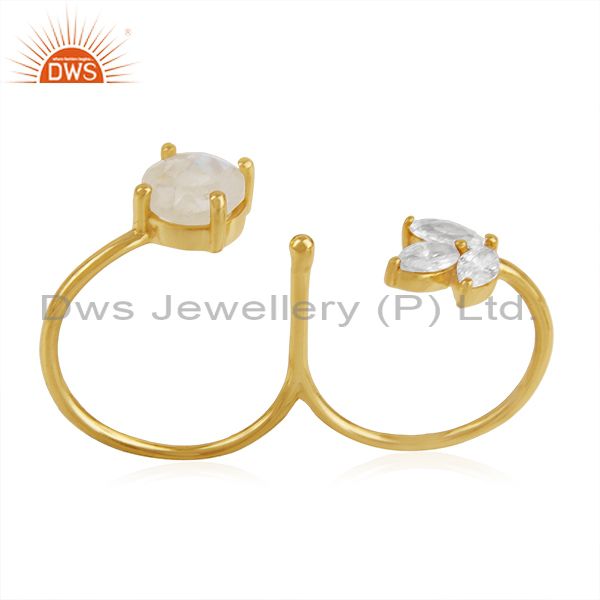 14k Gold Plated Brass Moonstone and Zircon Double Finger Ring Manufacturers