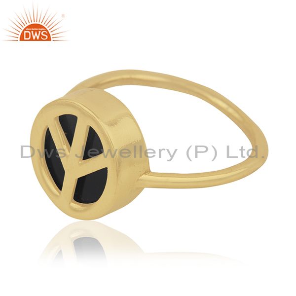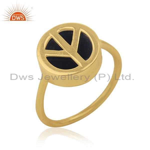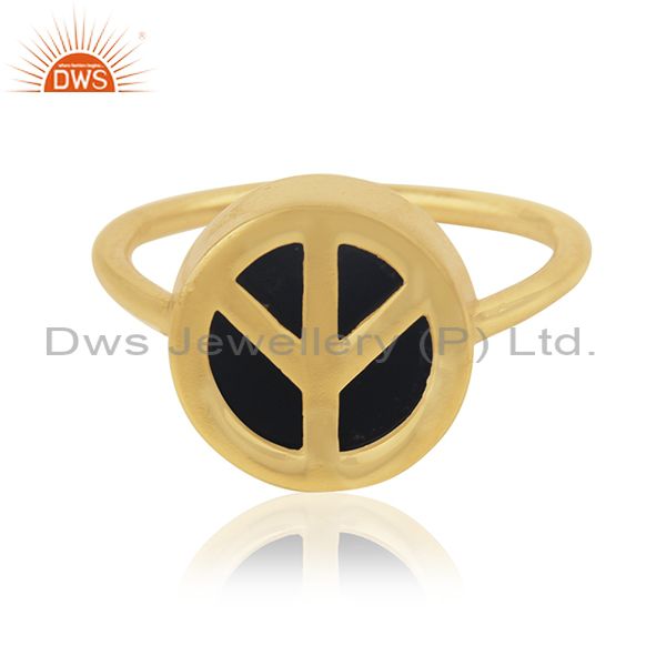 14k Gold Plated Customized Peace Sign 925 Silver Ring Manufacturer India