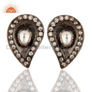 14K Gold Plated Sterling Silver Cz Teardrop Design Hammered Band Stacking Ring