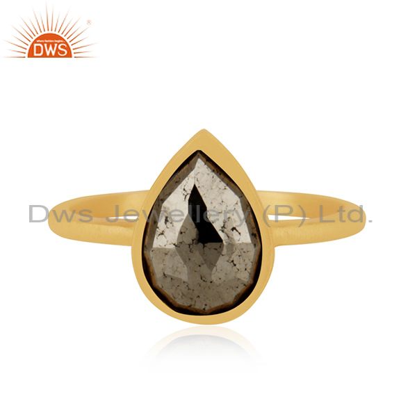 14k Gold Plated Sterling Silver Pyrite Gemstone Ring Manufacturer INdia