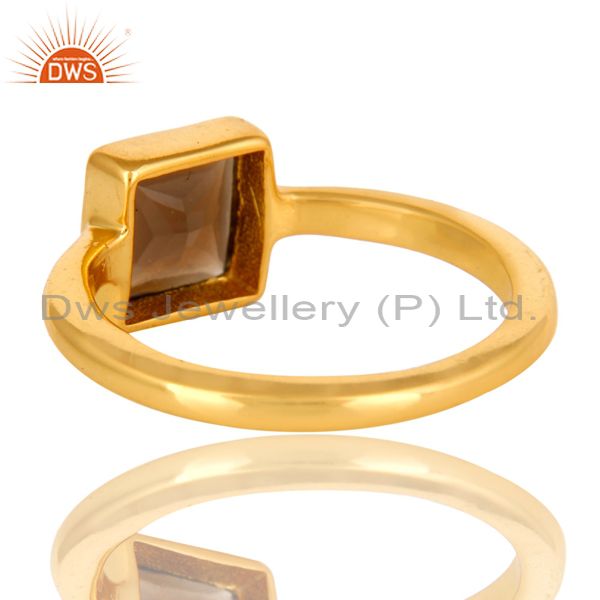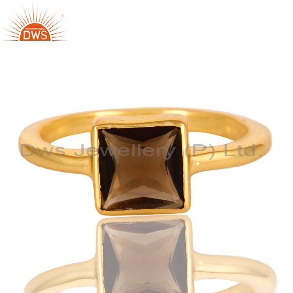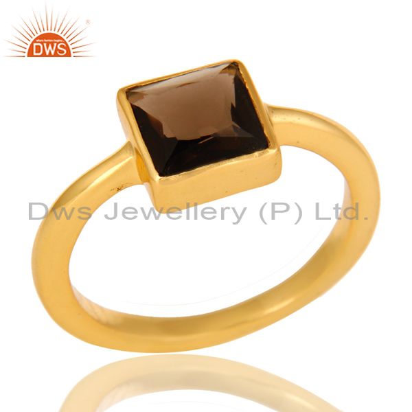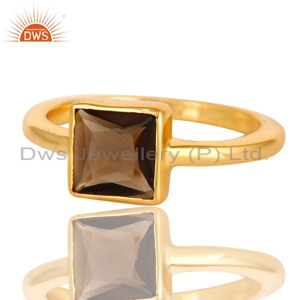 14K Gold Plated Sterling Silver Smoky Quartz Princess Cut Stack Ring