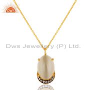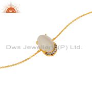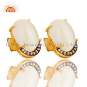 14k Gold Plated Sterling Silver White Moonstone Gemstone Stacking Ring With CZ