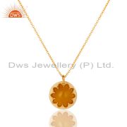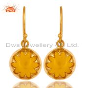 14K Gold Plated Sterling Silver Yellow Moonstone Round Stacking Ring