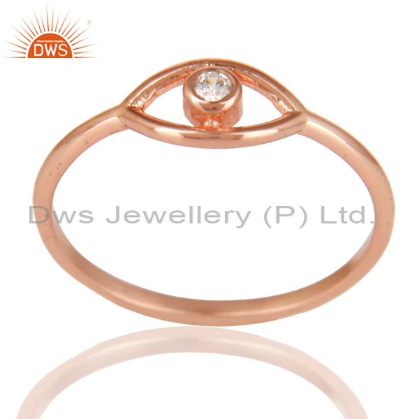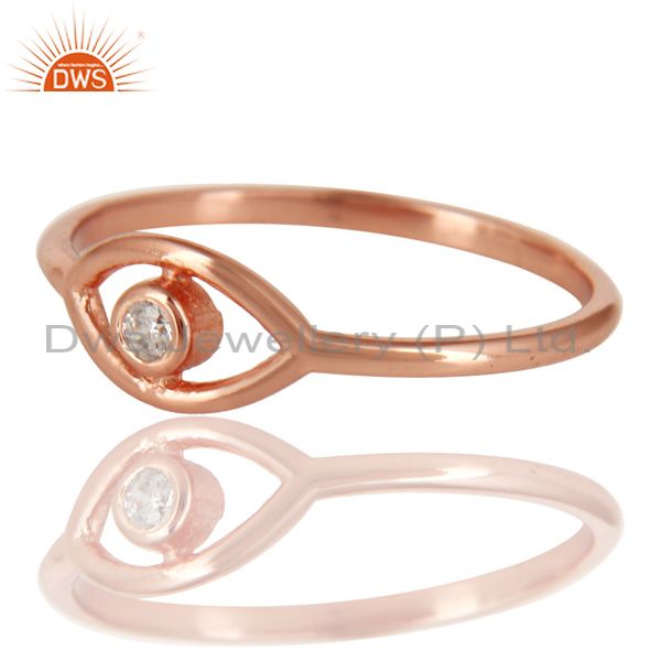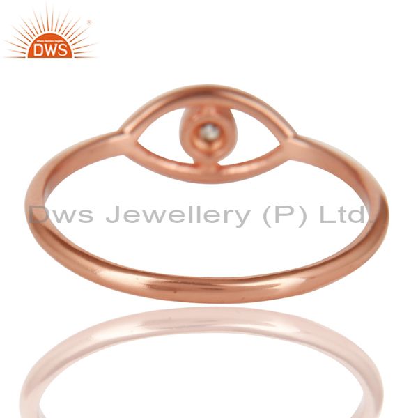 14K Rose Gold Plated 925 Sterling Silver Handmade White Zirconia Stackable Ring