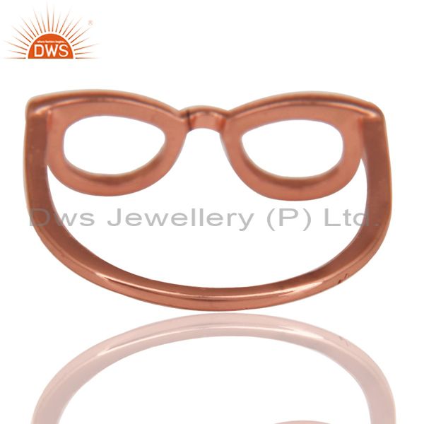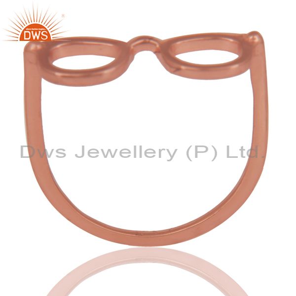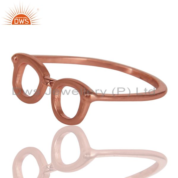 14K Rose Gold Plated Sterling Silver Handmade Art Goggle Design Stackable Ring