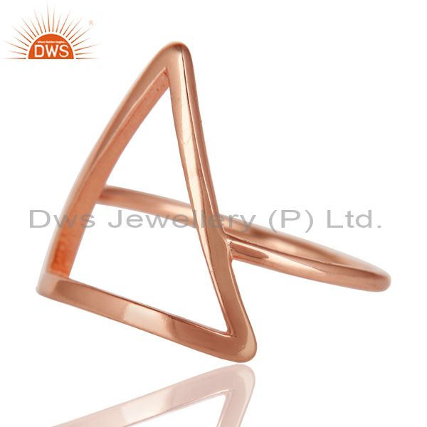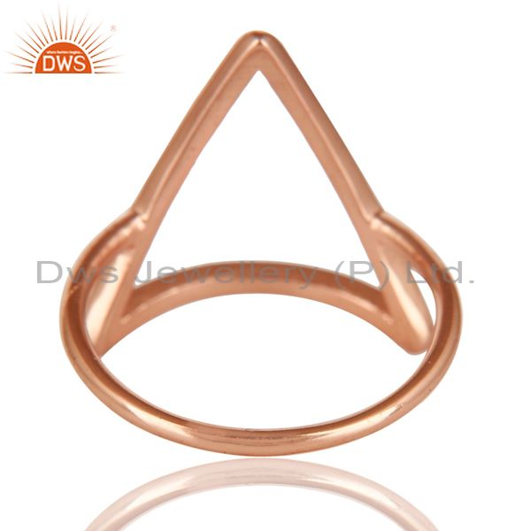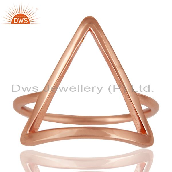 14K Rose Gold Plated Sterling Silver Handmade Art Trillion Design Stackable Ring