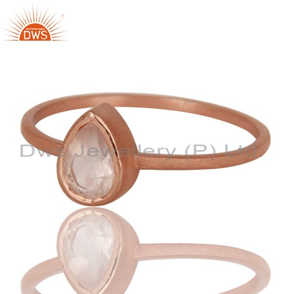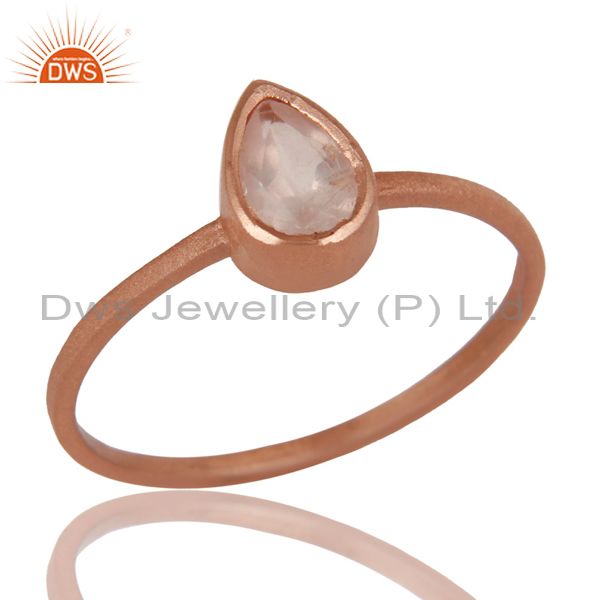 14K Rose Gold Plated Sterling Silver Rose Quartz Gemstone Stackable Ring