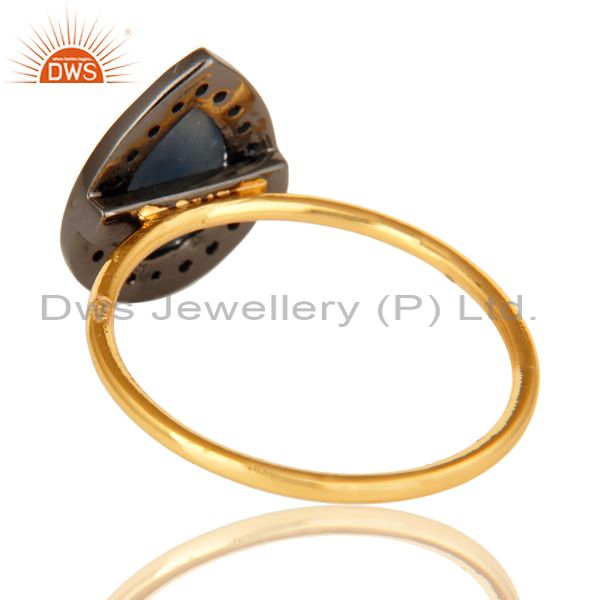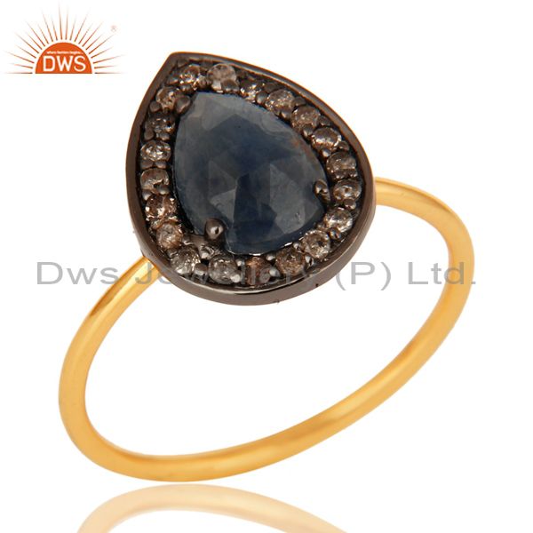 14K Solid Yellow Gold Blue Sapphire Pave Diamond Engagement Stacking Ring