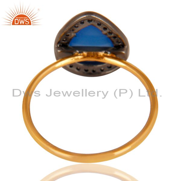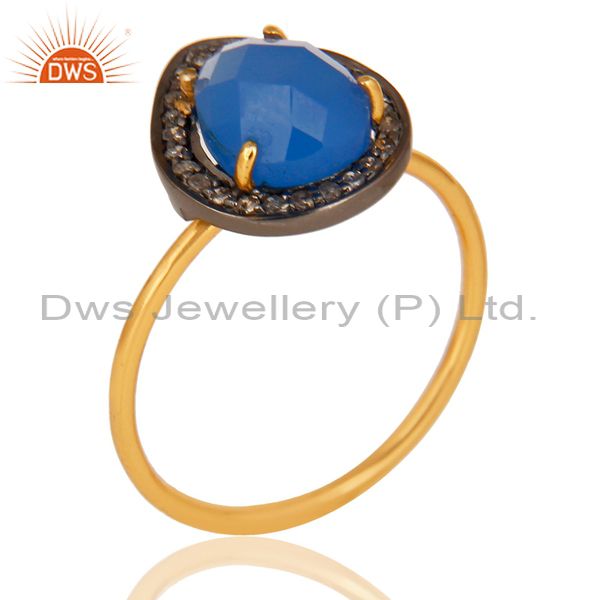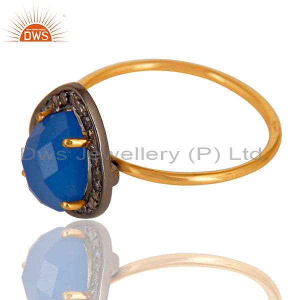 14K Solid Yellow Gold Dyed Chalcedony & Pave Set Diamond Stackable Ring