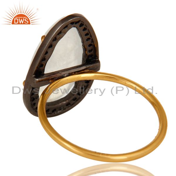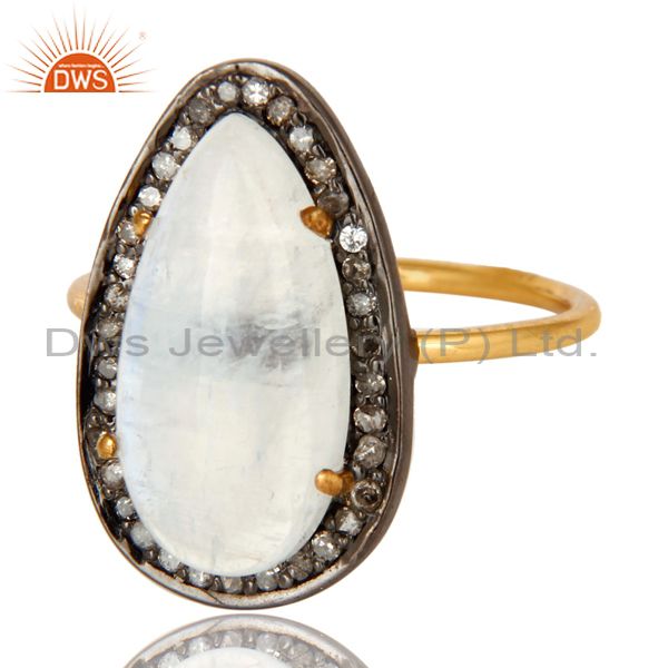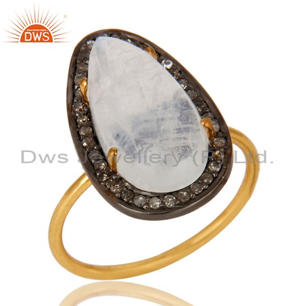 14K Solid Yellow Gold Pave Set Diamond And Rainbow Moonstone Stackable Ring