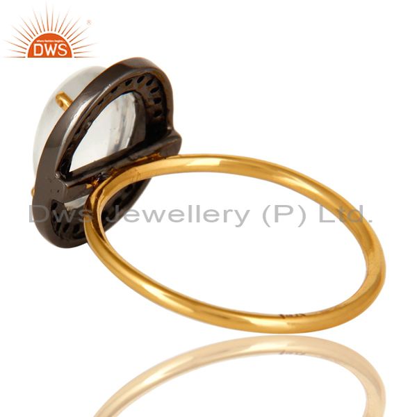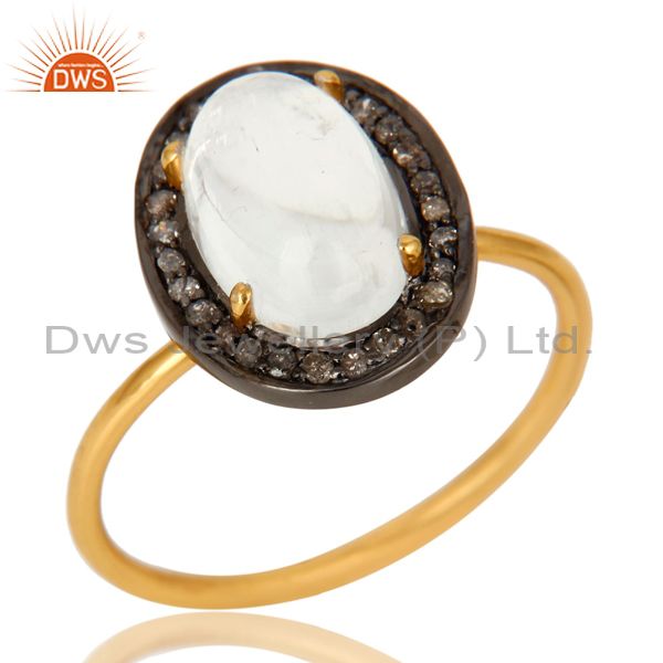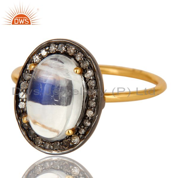 14K Solid Yellow Gold Rainbow Moonstone And Pave Diamond Stackable Ring