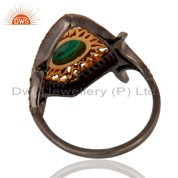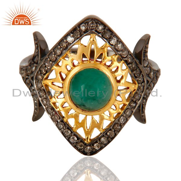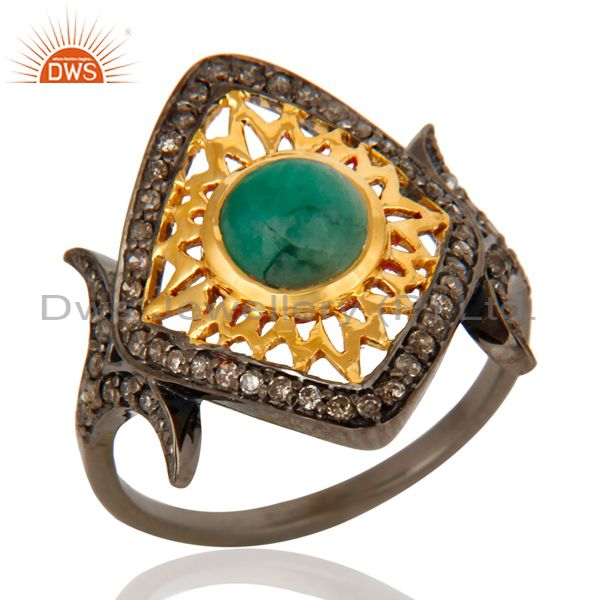 14k Yellow Gold Emerald Gemstone Pave Diamond Designer Sterling Silver Ring