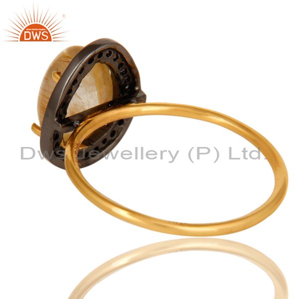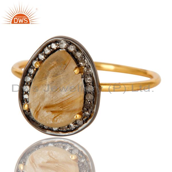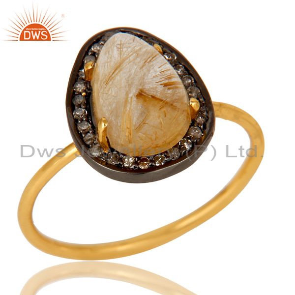 14K Yellow Gold Golden Rutilated Quartz And Pave Diamond Stackable Ring