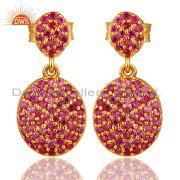 14K Yellow Gold Over Sterling Silver Pave Ruby Gemstone Stacking Cocktail Ring