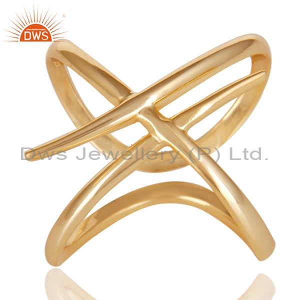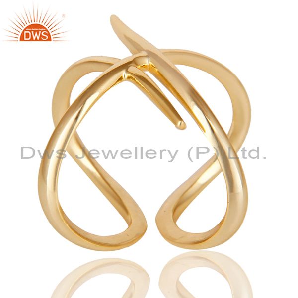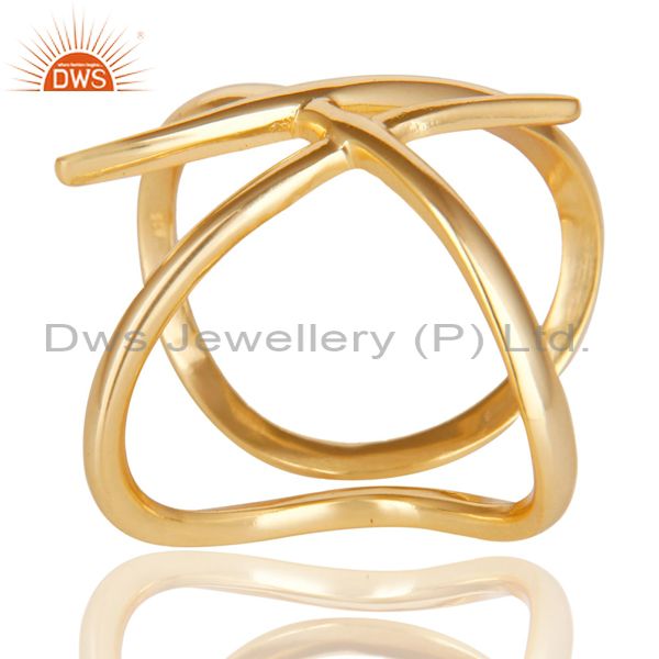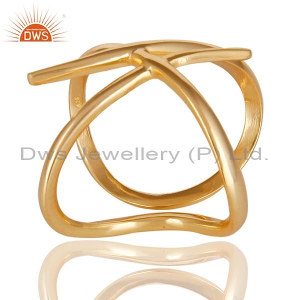 14K Yellow Gold Plated 925 Sterling Silver Handmade Art Deco Stackable Ring