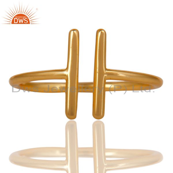 14K Yellow Gold Plated 925 Sterling Silver Handmade Art Spacing Fashion Ring