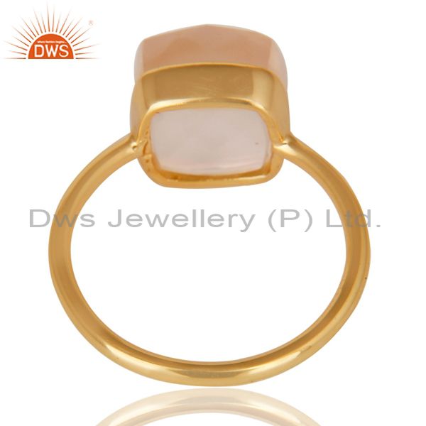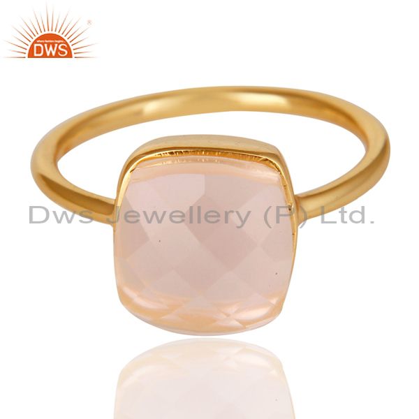 14K Yellow Gold Plated 925 Sterling Silver Handmade Rose Quartz Statement Ring