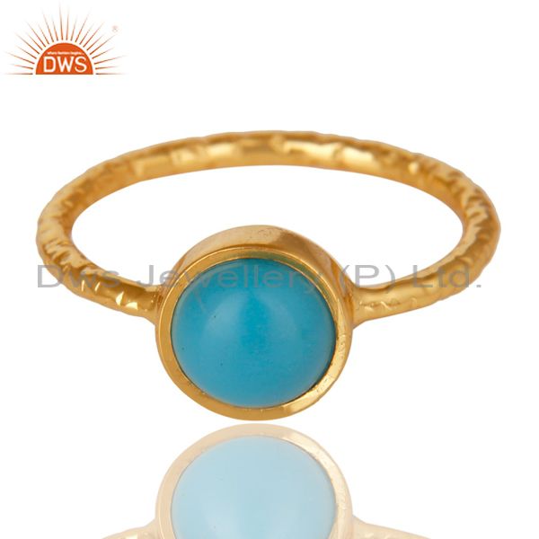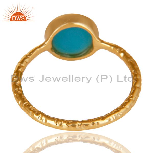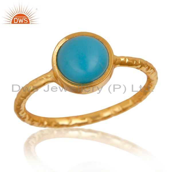 14K Yellow Gold Plated 925 Sterling Silver Handmade Turquoise Stackable Ring